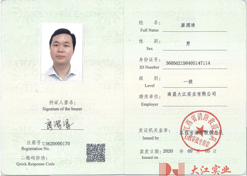 注冊消防工程師證廖渭清